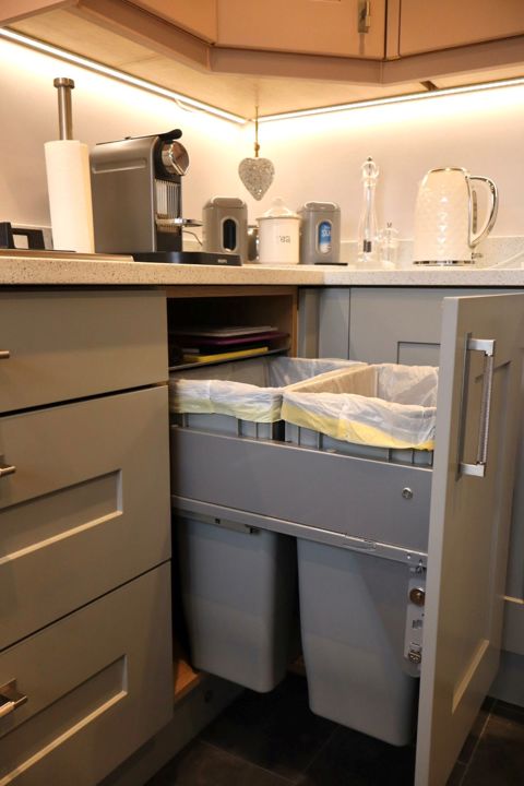 - Storage: Compact kitchen but very functional & plenty of storage Integrated bin Legra drawers, Lemans corner
